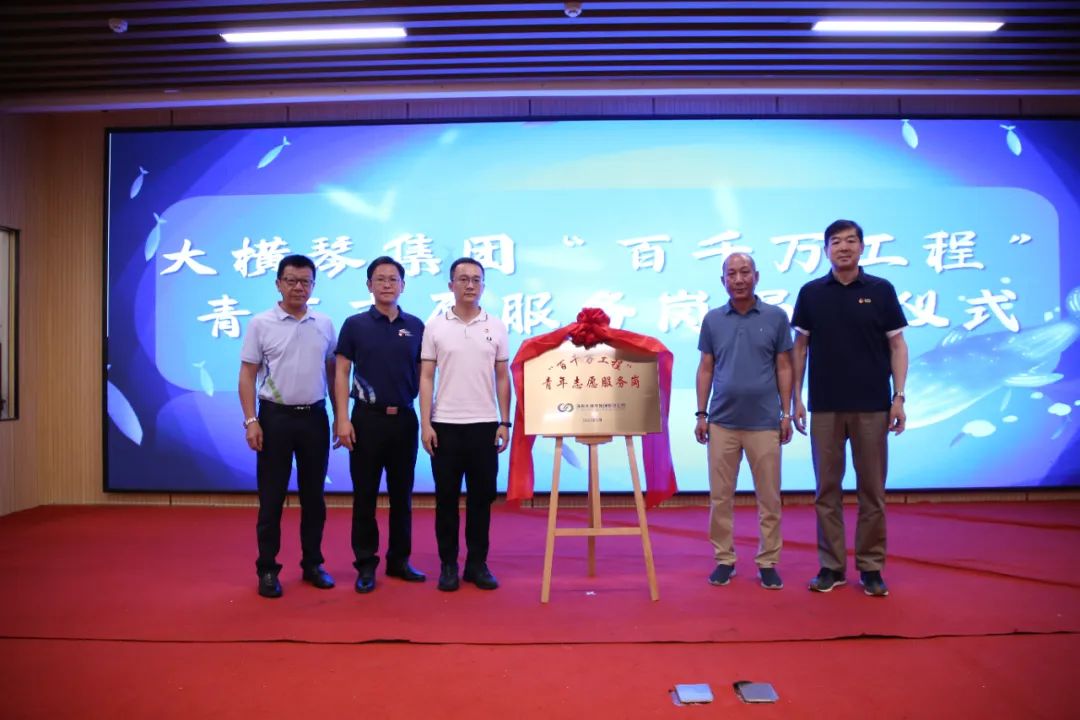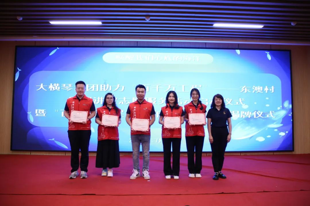 儀式上,共青團珠海市委員會權(quán)益與社會工作部部長王臻,珠海市萬山鎮(zhèn)人民政府黨委副書記、鎮(zhèn)長黃軒流,珠海大橫琴集團有限公司黨委副書記戴碩濤,珠海市萬山鎮(zhèn)東澳村書記石志明,萬山海洋生物科普館館長安東共同為“百千萬工程”青年志愿服務(wù)崗揭牌,啟動助力“百千萬工程”——東澳村暑期講解志愿服務(wù)活動。